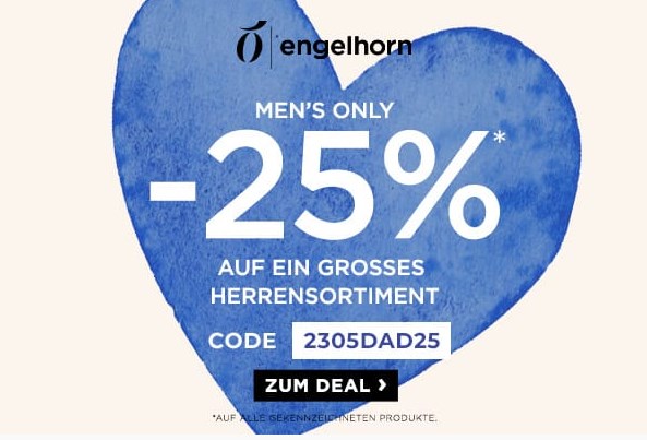 Bei engelhorn bekommt ihr bis zum 21.05.23 25% Rabatt auf ein großes Herrensortiment