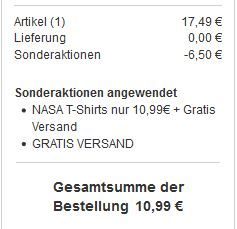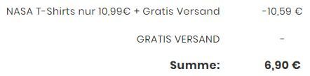 Hinweis: Der unter den T-Shirts stehende Preis von 10,99€ ist nicht korrekt, denn im Warenkorb sind es nur 6,90€.