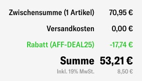 - 25% Extra-Rabatt mit dem o.g. Gutscheincode