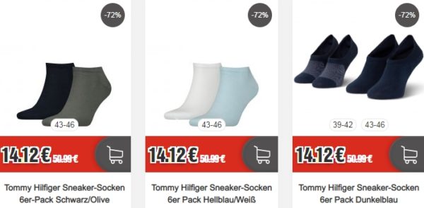 Bei top12 bekommt man die Tommy Hilfiger Sneaker-Socken (6er-Pack) für 14,12€ (Vergleichspreis: ~30€) Ersparnis ~16€