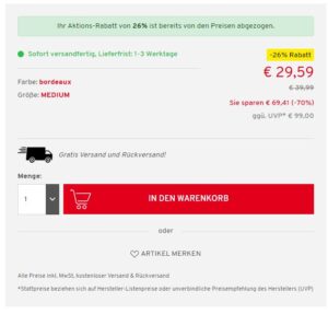 Der Versand wie auch eine eventuelle Retoure erfolgt kostenlos.