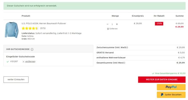 Der Versand wie auch eine eventuelle Retoure erfolgt kostenfrei.