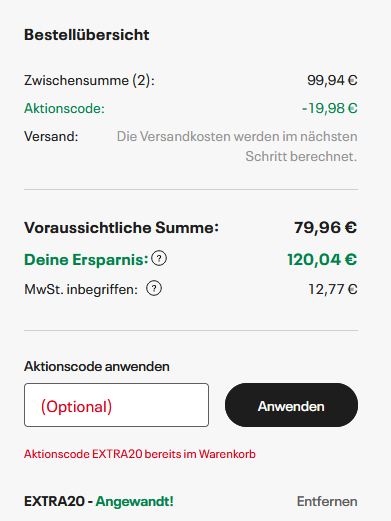 - Benutzt dazu den Gutscheincode: EXTRA20