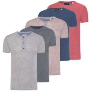 - Details: Basic T-Shirt, Rundhalsausschnitt, gerader Schnitt, meliert, wahlweise mit oder ohne Knopfleiste