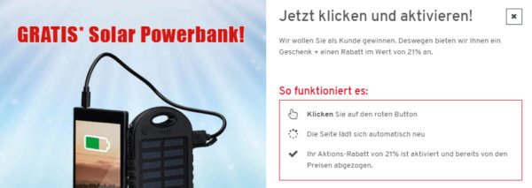 Denn dort bekommt man nun 21% Rabatt auf alles inkl. Rodh Solarpowerbank (4.000 mAh) im Online-Shop.