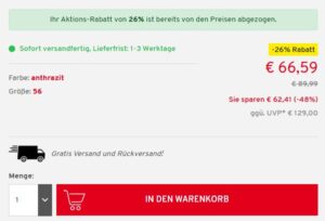 Der Versand wie auch eine eventuelle Retoure erfolgt kostenlos.