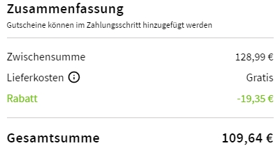 Um auch auf den Preis zu kommen, müsst ihr den 10€ Newsletter-Gutschein verwenden.