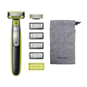- Lieferumfang: OneBlade Handstück, 2 Klingen, 4 Trimmaufsätze für das Gesicht, 1 Trimmaufsatz für den Körper, 1 Haut Schutz Aufsatz, Reisebeutel
