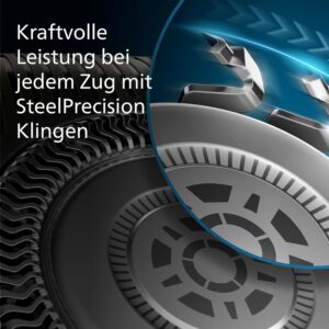 - Schneidet mit jedem Zug mehr*: 45 selbstschärfende SteelPrecision Klingen schneiden 90.000 Mal pro Minute für eine effiziente und gründliche Rasur