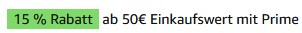 Wer zudem für mehr als 50€ bestellt, der bekommt nochmal 15% Rabatt!