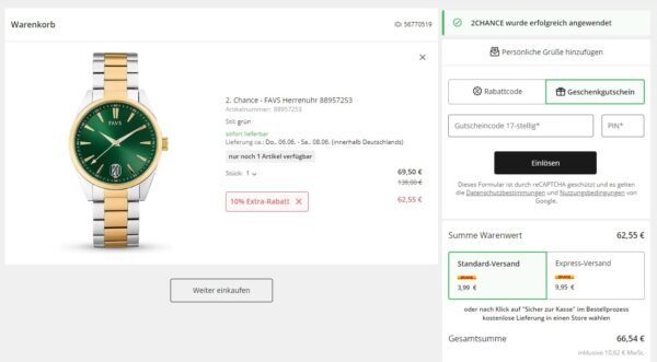 - FAVS Herrenuhr für 62,55€ (statt: ~70€) Ersparnis ~7€