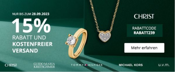 Bei Christ erhaltet ihr bis einschließlich 28. September satte 15% Rabatt auf Uhren & Schmuck + kostenloser Versand