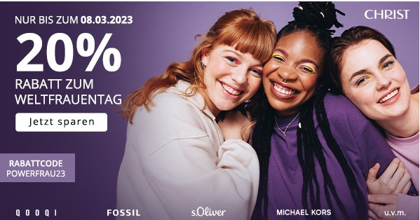 Bei Christ erhaltet ihr bis einschließlich 08. März satte 20% Rabatt auf Accessoires für Sie zum Weltfrauentag