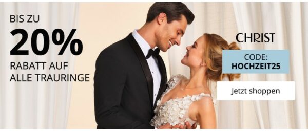 Christ: Bis zu 20% Rabatt auf alle Trauringe