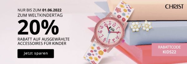 Bei Christ erhaltet ihr bis einschließlich 1. Juni satte 20% Rabatt auf ausgewählte Accessoires für Kinder. 🙂
