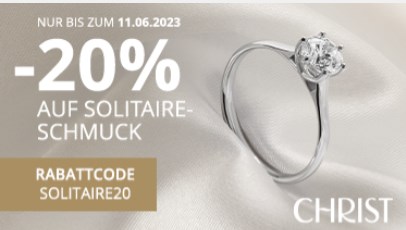 Bis einschließlich 11. Juni erhaltet ihr bei Christ satte 20% Rabatt auf funkelnde Solitaire-Accessoires im Onlineshop. 🙂