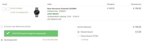 Gutscheincode: AUGUST19 | Wendet diesen Gutscheincode im Warenkorb an und erhaltet den Rabatt.