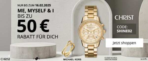 Bei CHRIST erhaltet ihr nun bis einschließlich 16. Februar bis zu 50€ Rabatt auf ausgewählte Schmuckstücke & Uhren! 🙂