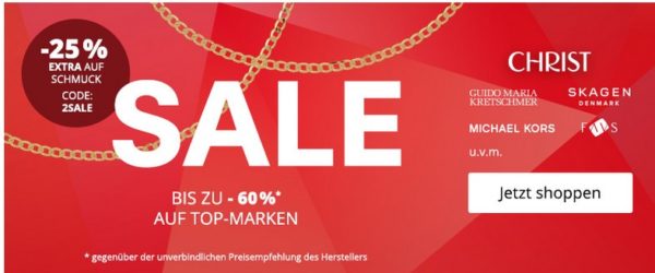- Bis zu 60% Rabatt auf Top-Marken + 25% Extra-Rabatt auf Schmuck