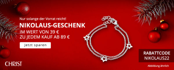 Denn bei Christ bekommt man ein Nikolausgeschenk bei Bestellungen ab 89€ (Wert 39€) im Online-Shop.
