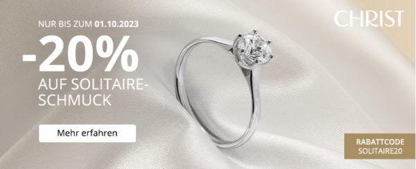Bei CHRIST erhaltet ihr bis einschließlich 1. Oktober satte 20% auf Solitaire-Schmuck.
