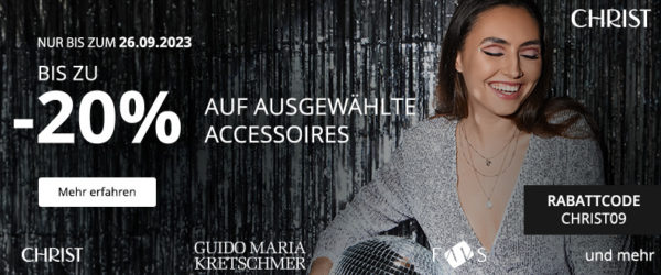 Bei Christ erhaltet ihr bis einschließlich 26. September satte 20% Rabatt auf ausgewählte Accessoires. 🙂