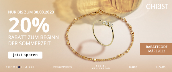 Auf der Suche nach ein wenig Bling Bling für euch selbst oder die Liebste? Bei Christ erhaltet ihr bis einschließlich 30. März satte 20% Rabatt auf ausgewählte Artikel! 🙂