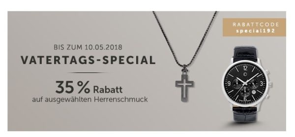 Im Onlineshop von Christ bekommt ihr gerade zum Vatertag 35% Rabatt auf ausgewählten Herrenschmuck