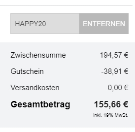 Um auch auf den Preis zu kommen, müsst ihr den Gutschein-Code HAPPY20 verwenden.