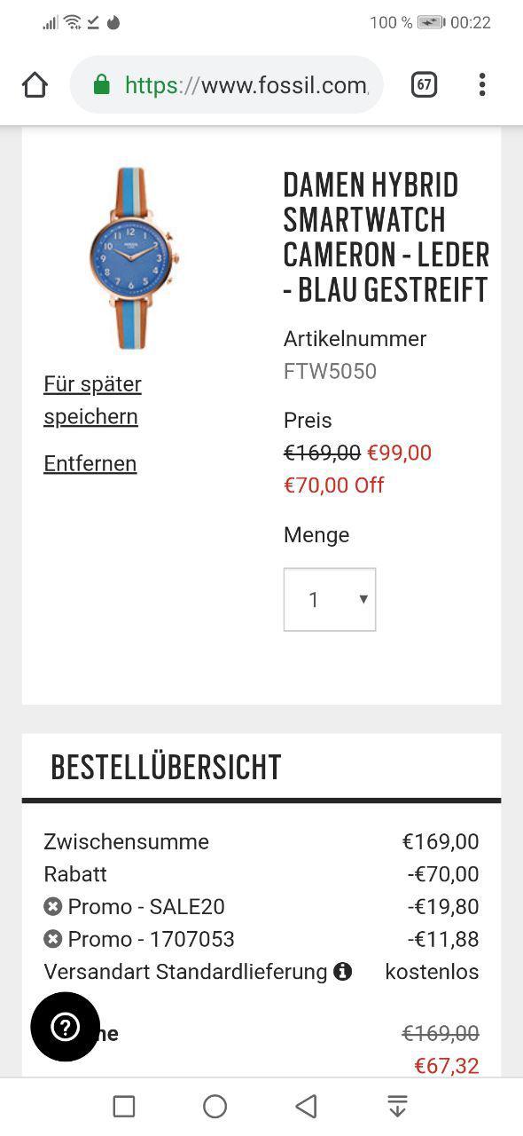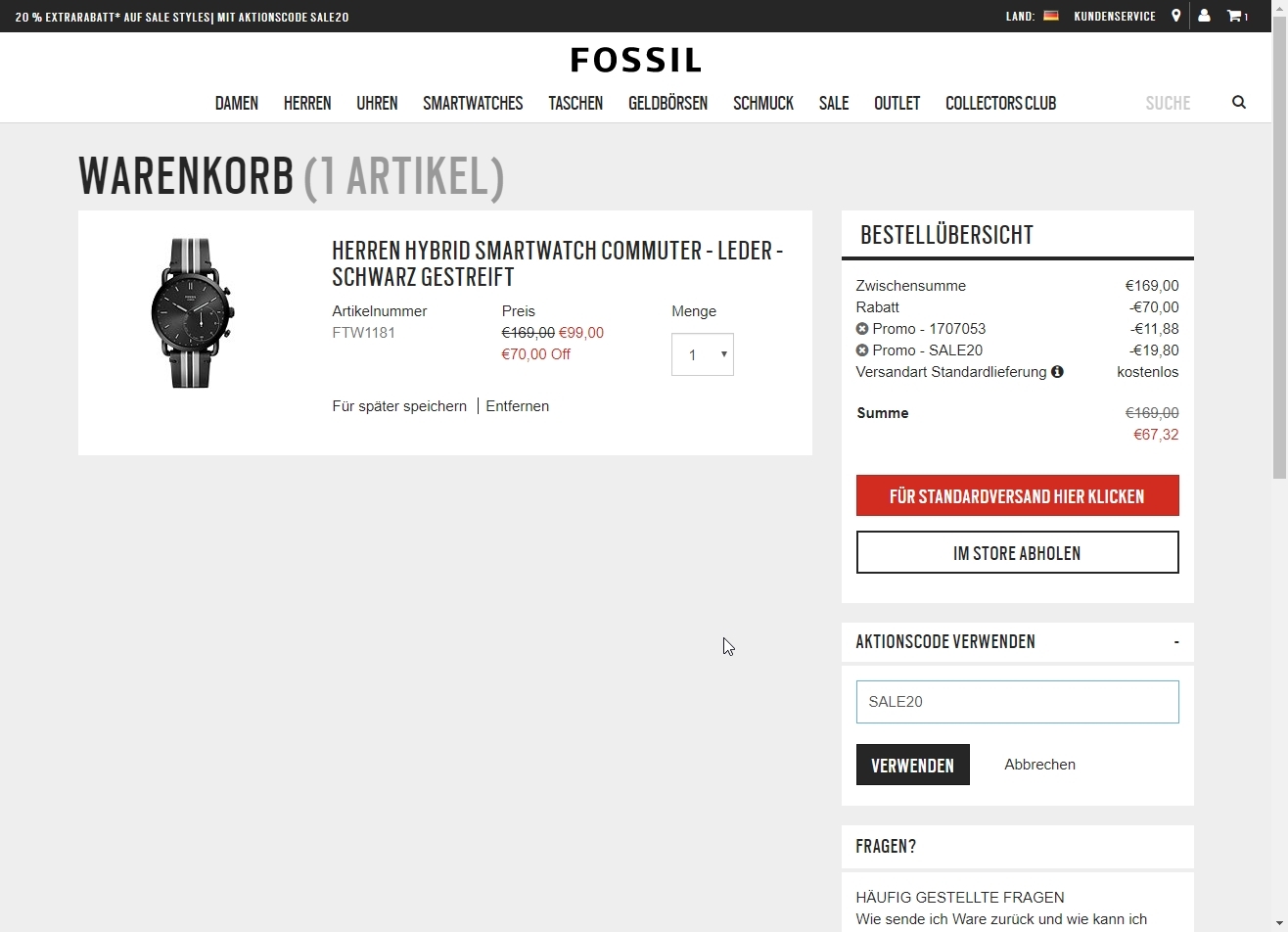 Maximilian John (Gast) 26.07.2019, 09:13 #Ich habe gerade mal bei Fossil angerufen, gestern Abend ging es nämlich bei einer Damenuhr noch und heute nimmt er den SALE nicht mehr an.