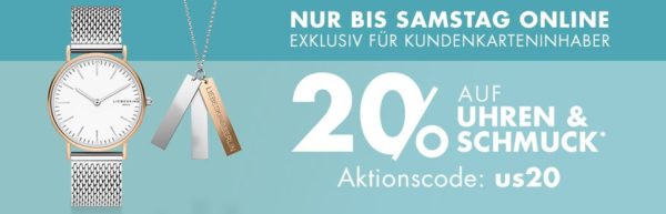 - 20% Rabatt auf Uhren & Schmuck für Kundenkarten Inhaber