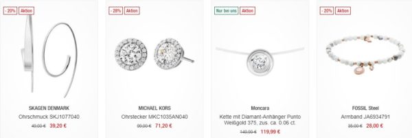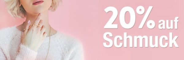 20 % auf Schmuck. Gültig online vom 24.07. bis 26.07.2019. Der Rabatt ist bereits am Preis abgezogen und nicht mit anderen Aktionen kombinierbar. Ausgeschlossen sind folgende Marken (nähere Infos auf www.kaufhof.de/svp).