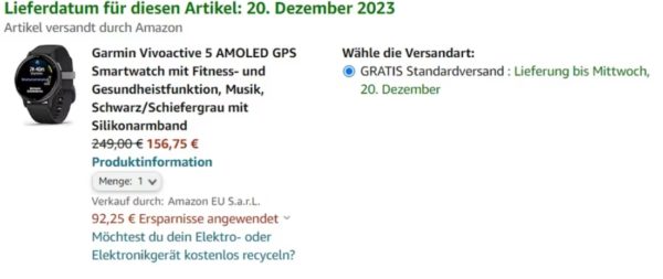Bei Amazon kann man mit ewas Glück 2 Aktionen gleichzeitig nutzen und die folgende Smartwatch mit einem sehr guten Rabatt kaufen.