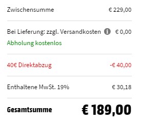 Das ganze sollte dann so in eurem Warenkorb aussehen: