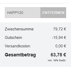 Um auch auf den Preis zu kommen, müsst ihr den Gutschein HAPPY20 verwenden.