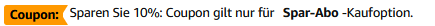 Aktiviert dazu einfach ein Sparabo und spart dank diesem die 10% extra. Das Sparabo lässt sich bequem per Klick nach der ersten Lieferung wieder kündigen (Link)