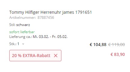- Tommy Hilfiger Herrenuhr für 83,90€ (Vergleichspreis: ~105€) Ersparnis ~21€