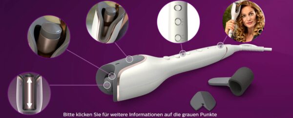 - Automatischer Lockenstab mit innovativer MoistureProtect Technologie, die die Temperatur kontrolliert und anpasst, um den Glanz zu verstärken und die natürliche Feuchtigkeit Ihres Haars zu erhalten