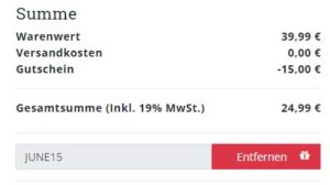 Gutscheincode: JUNE15 | Wendet diesen Gutscheincode im Warenkorb an und erhaltet den Rabatt.