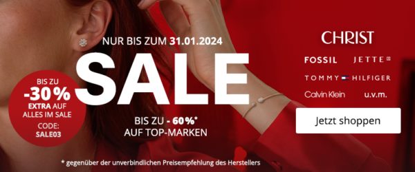 Bei CHRIST erhaltet ihr nun bis einschließlich 31. Januar bis zu 60% Rabatt auf Top-Marken + 30% Extra-Rabatt auf ALLES im Sale. 😀