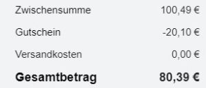 Gutscheincode: 20SOMMER | Wendet diesen Gutscheincode im Warenkorb an und erhaltet den Rabatt.