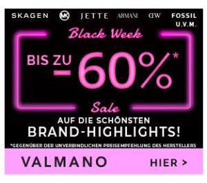 Valmano Black Week: Bis zu 60% Rabatt auf die schönsten Brand-Highlights