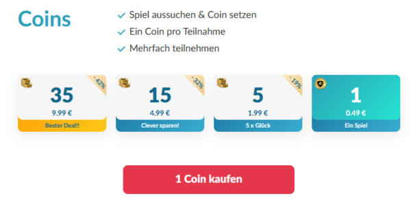 Coins für das Gewinnspiel oder andere Gewinnspiele gibt es übrigens auch zu kaufen.