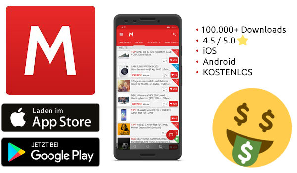 Wie bereits erwähnt, muss der WhatsApp-Newsletter aufgrund von Datenschutzgründen vom Betreiber am 7. Dezember 2019 eingestellt werden. Um weiterhin keine Deals, Preisfehler oder Gutscheinknaller zu verpassen, empfehlen wir euch unsere App, welche sowohl für iOS als auch Android kostenlos im jeweiligen Store erhältlich ist. (Hier der One-Link um direkt zum Store zu kommen)
