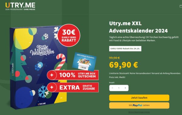Genial! Nachdem wir den Deal euch anbieten konnten (Link), haben wir nun auch einen UTRY.ME XXL Adventskalender 2024 zum Verlosen für euch!
