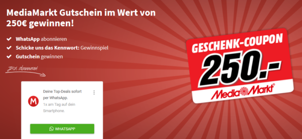 *ENDET HEUTE* Whatsapp/Telegram/Insta/Messenger abonnieren und 250€ MediaMarkt Gutschein + garantiert kostenloses Jahresabo!