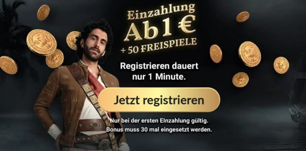 Jackpotpiraten: 1€ einbezahlen und 50 Freispiele erhalten
