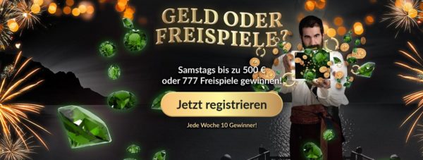 Zudem gibt es am heutigen Samstag noch die Aktion bei der ihr bis zu 500€ oder 777 Freispiele gewinnen könnt.