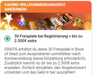 - 30 Freispiele in Book of Dead zum Ausprobieren