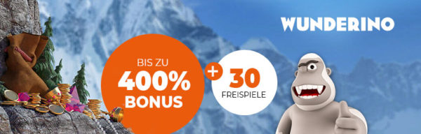 - Wunderino: 400% Bonus bis 40€ + 30 Freispiele